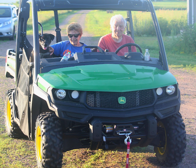 Brent left for home this morning loaded down w/ berries that he picked, swiss cheese and bologne sandwiches which he said were his favs, and no-bake cookies from Mom's recipe.  Phil came over later in the morning and asked if I wanted to go out w/ Sheila and him for lunch at Katie's.  "Sure," I replied.  (Yes, I know the restaurant downtown hasn't been known as "Katie's" for many years however it was a snappy name for a diner and maybe they should consider changing it back.)  We stopped there around noon only to find a sign on the door stating they were closed today due to lack of staff.  Decided to try a new restaurant in Lumbertown which is only about ten miles away.  When we got there a sign outside stated they were closed on Tuesday & Wednesdays.  Small towns can be like that.  Walked up the street to the local bar.  They were open and had burgers.  Actually they had excellant burgers along w/ great fries.  Can't say I'm a fan of most bar ambiances but good food is good food.